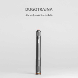 Baterijska lampa u obliku olovke NEBO Columbo 150 ima LED sijalice od 150 lumena, 3 režima osvetljenja, 4X podesivi zum, jaku i vodootporno (IP67) eloksirano kuc´ište od avionskog aluminijuma. Napajaju je 2 x AAA alkalne baterije.